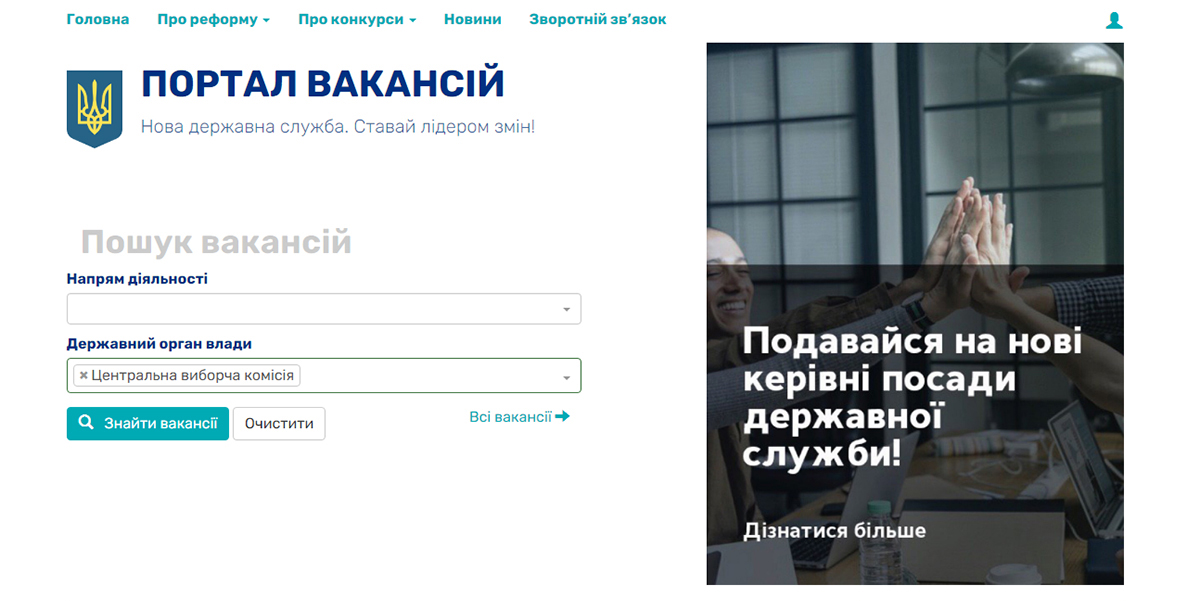 Щоб подати документи на омріяну вами вакансію в Секретаріаті Центральної виборчої комісії, пройдіть наступні кроки: